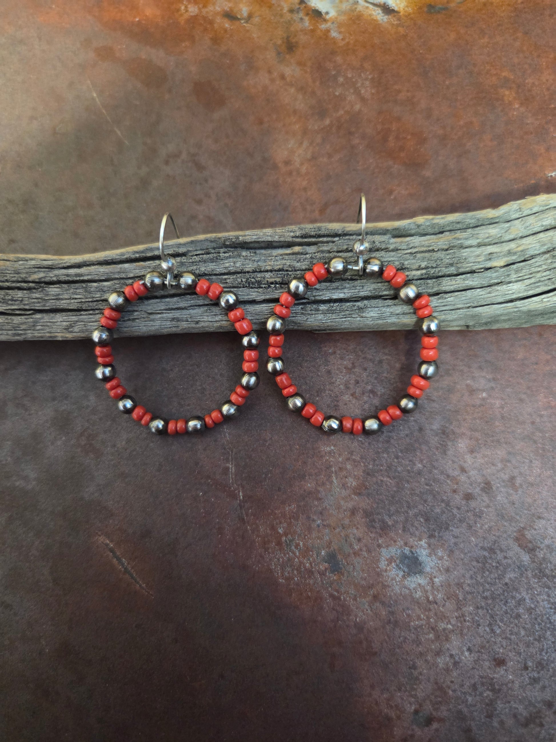 Red and Silver Beaded Earrings